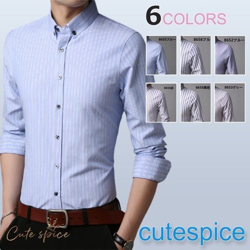 メンズシャツストライプシャツ長袖白シャツストライプカジュアルyシャツサテンシンプル白ブランド春ブルー グレー 通販 Lineポイント最大get Lineショッピング